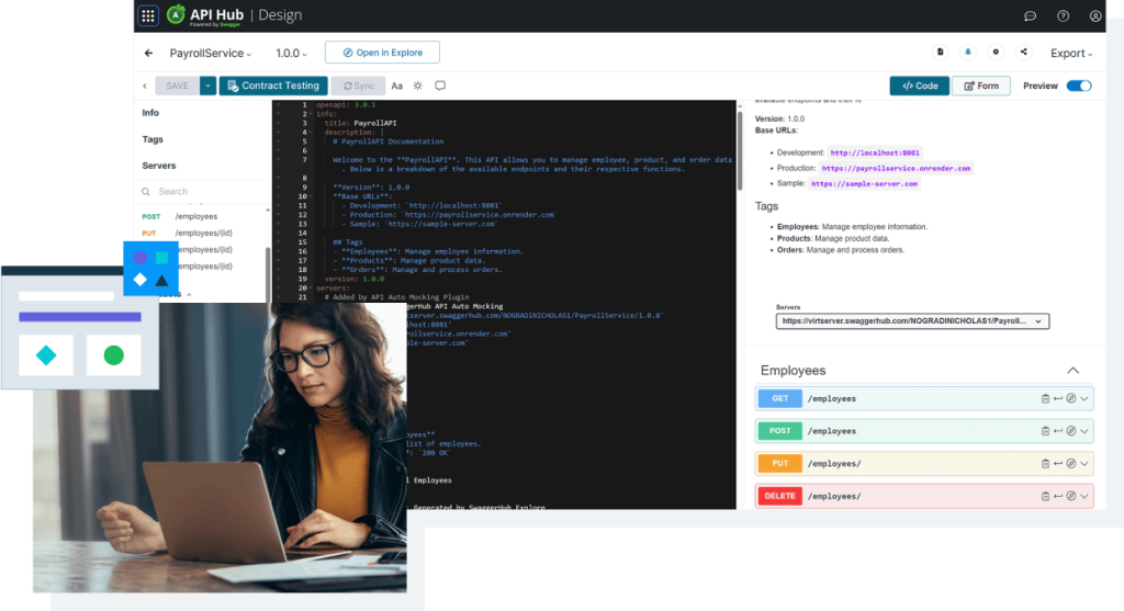 以无缝集成的功能,在规模上提供高质量的 API,这些功能专为设计、文档和测试 API 而构建,无需切换上下文。