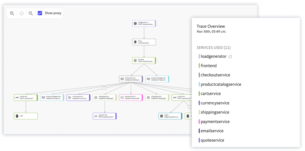 理解每个用户旅程,通过追踪跨服务的应用程序错误,确定根本原因,并提升可靠性和性能。